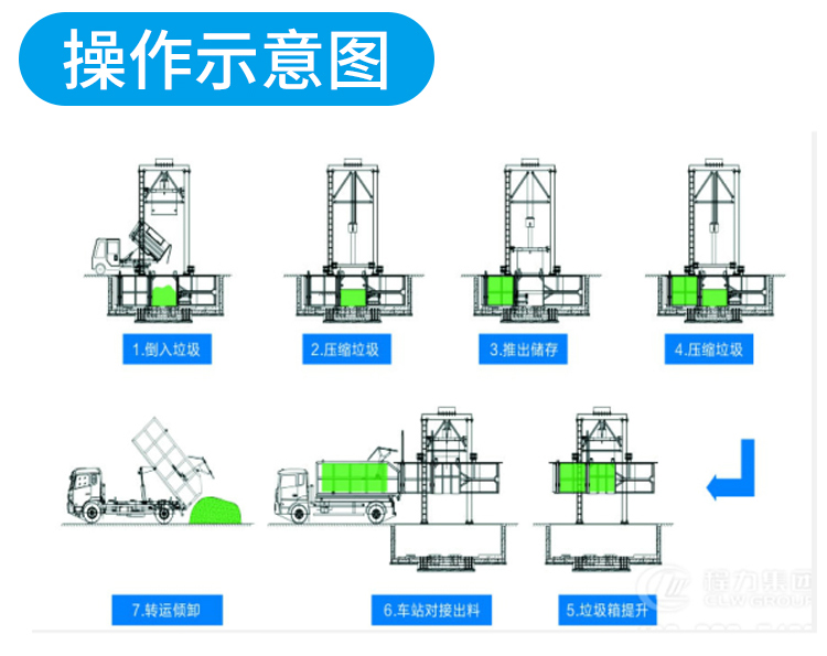 用于垃圾的儲(chǔ)存、壓縮及寄存全部在地面以下,地面上沒(méi)有垃圾散落。 采用垂直壓縮方式,壓縮力大,垃圾塊壓實(shí)密度大。